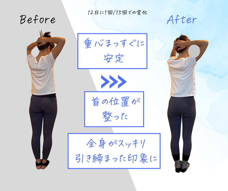 さらにお尻がキュッと上がり、足がすらっと長く見える変化に「体重は変わっていないのにスタイルが良くなった!」と驚かれていました。