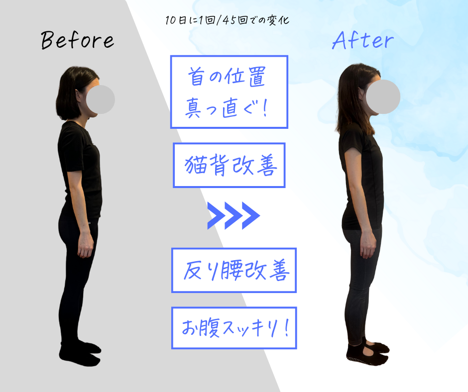 忙しいお仕事、旅や新しい挑戦と並走しながら、呼吸・姿勢・体幹を“少しずつ”思い出していく——その連続が、お客さまの凛とした後ろ姿をつくりました。