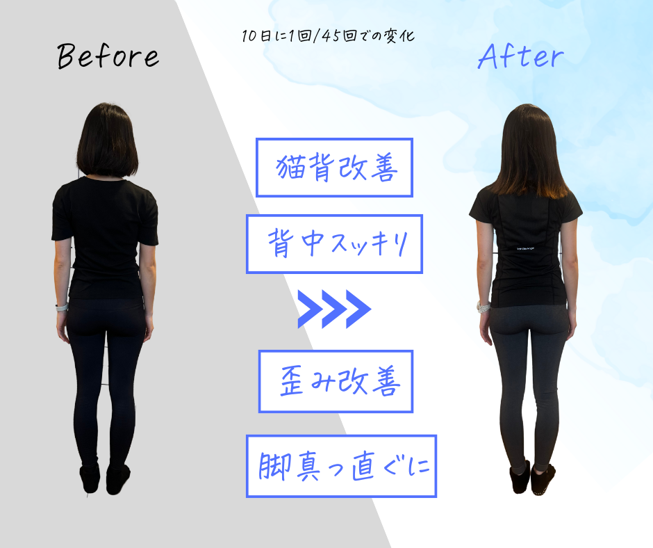 「猫背の自分がダサい。。周りからも自分でも、姿勢が悪いって気になっていて…猫背と巻き肩、首こりもつらいんです。」