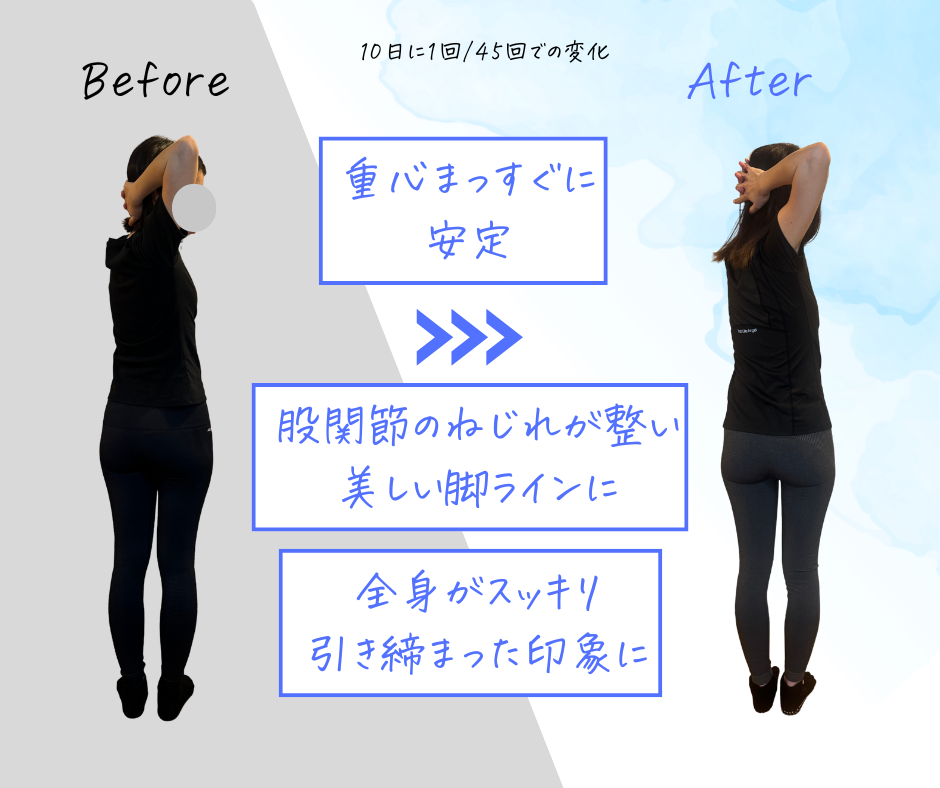 写真で見た自分の背すじは、以前よりすっと長く、足もまっすぐ。フェイスラインまで変わって見えて、思わず笑顔に。