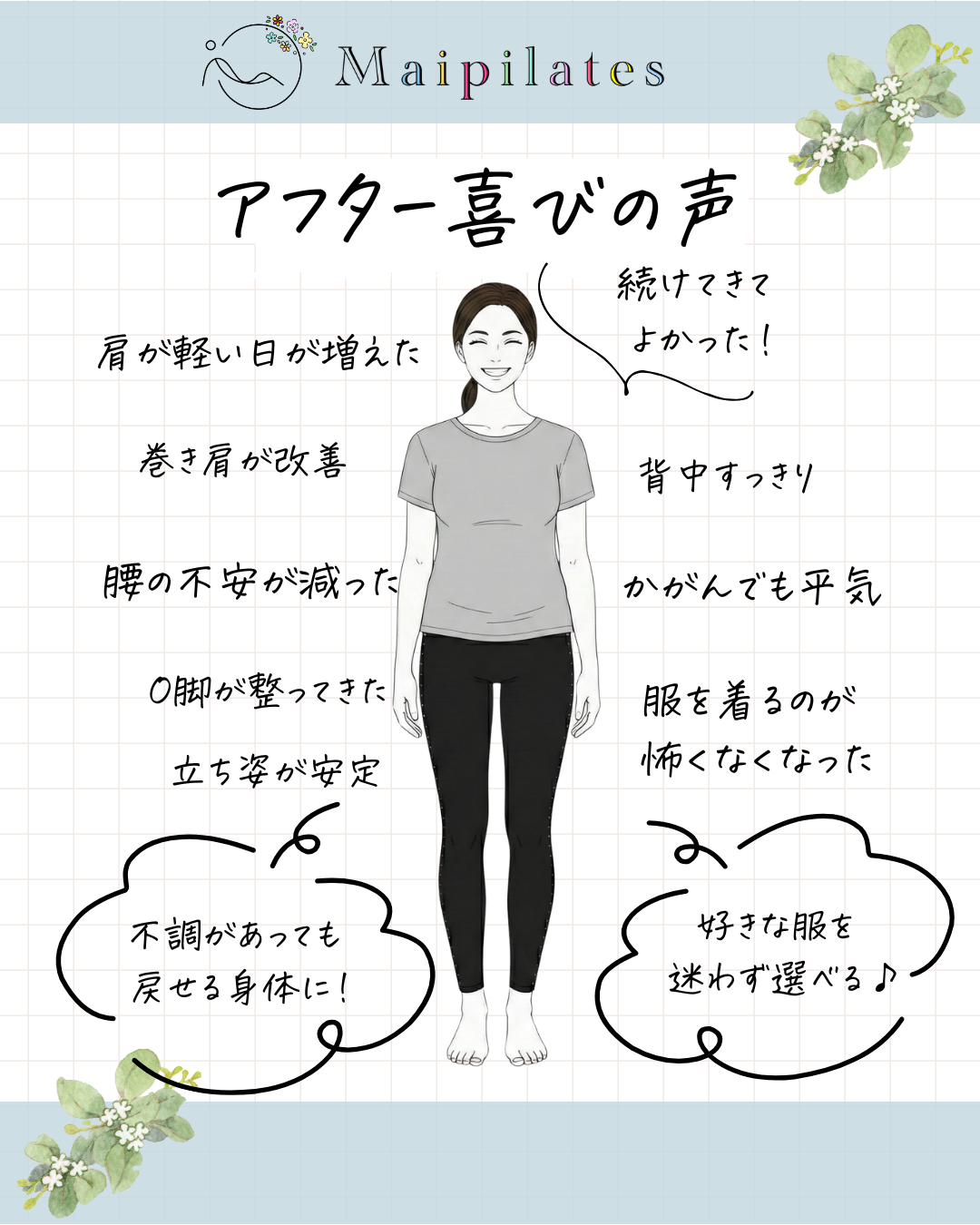 この方の変化を見ていて感じたのは、ピラティスって「姿勢を良くする」だけのものではなく、「明日が怖くなくなる身体」を作る時間なんだということです。